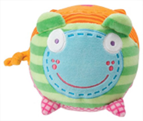 Roll around and hear the sounds from 'Round The Farm! Four farm animals in one! Press the right ear of each animal and learn their sound. Bark! Meow! Oink! Ribbit! Bell chime inside! Learn motor skills through catching, rolling and grabbing.
