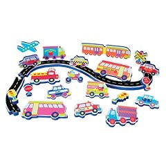 Our 22 month old received this set of cars, trucks, signs, etc. in a big pack that also came with the letters and shapes and numbers. The first night he spent a long time making car and bus and firetruck sounds along the "road". The second night, rather than having to 'coax' him to the bath he ran in delight to get to play with the set! It was a great gift - I'd love to find the "big" set we received somewhere so I could buy it as a gift for someone else to enjoy!